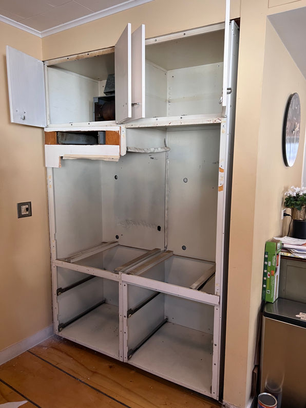 -Demolition-Design-Fabrication-Spray finishing-Installation-Walnut counter fabrication-GFI outlet prep